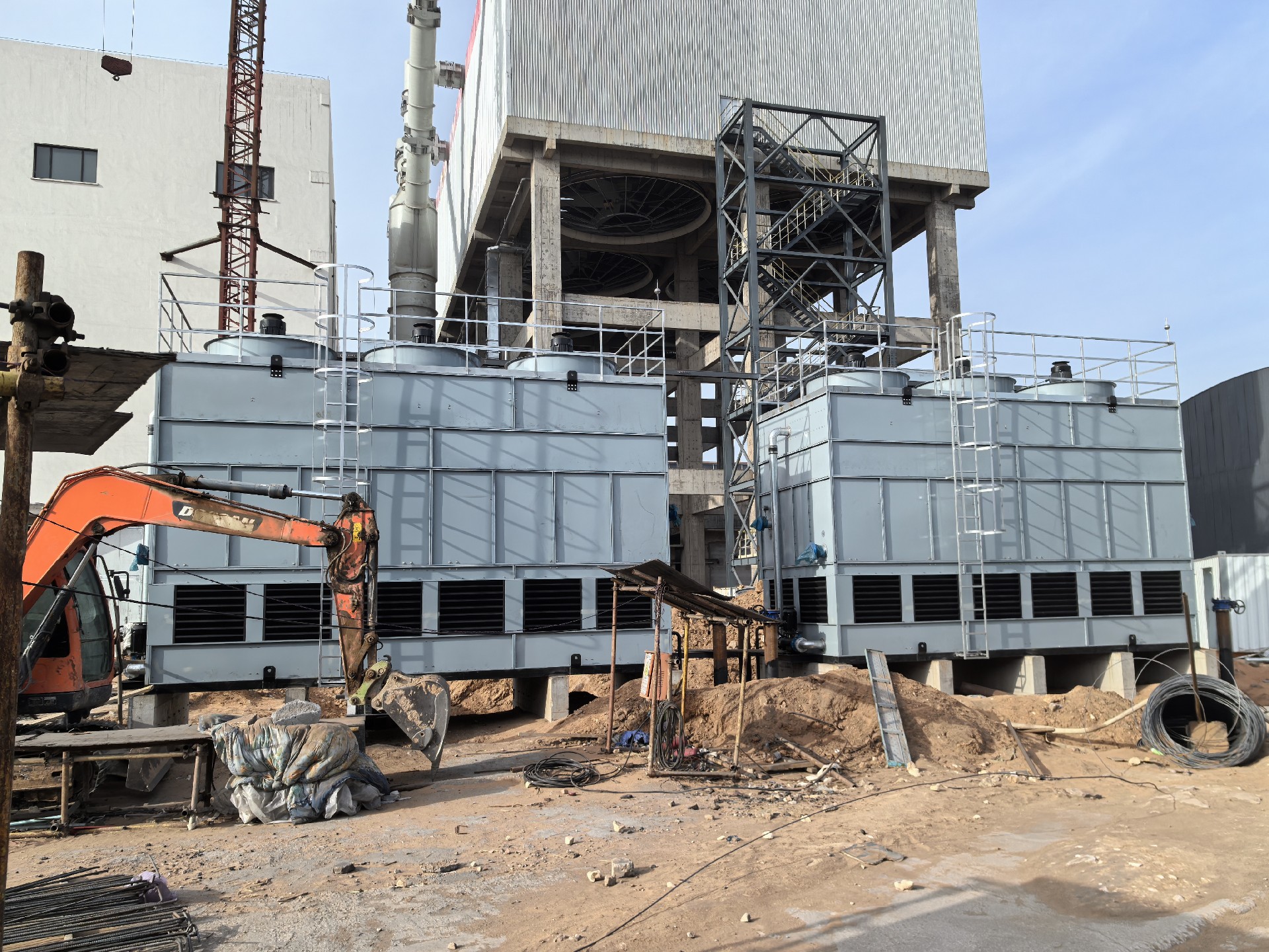 本圖為某新建大型商業綜合體項目的閉式冷卻塔屋頂安裝實拍,多臺并聯式方形閉式冷卻塔整齊部署于建筑屋面,為樓宇中央空調系統、配套工藝設備提供穩定、高效的全封閉冷卻解決方案,是大型商用建筑溫控系統的核心配套設備。