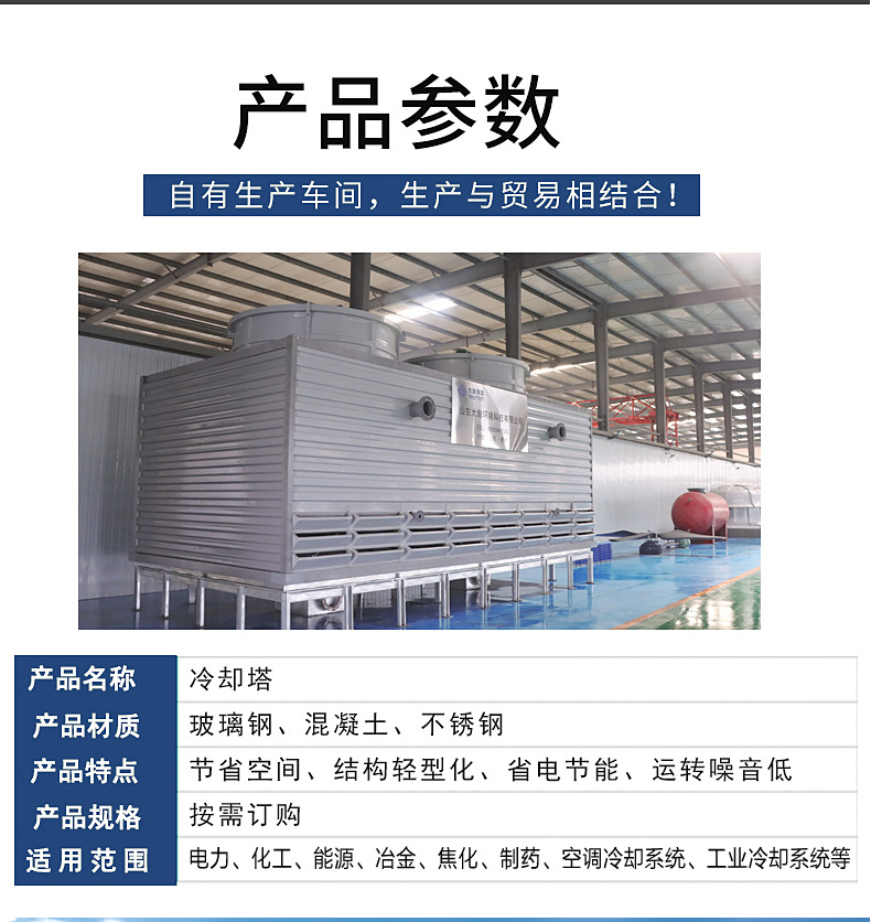 該系列閉式冷卻塔兼具高效換熱、節能節水、低噪環保、運維便捷等核心優勢,節水率超 30%,能耗較傳統開式塔降低 15%-30%,廣泛應用于商業綜合體、寫字樓、數據中心、高端酒店等大型建筑項目,可根據項目冷量需求、安裝空間定制化配置,提供從方案設計、設備生產到現場安裝調試的全流程一站式服務,為建筑溫控系統的穩定運行提供堅實可靠的冷源支撐。