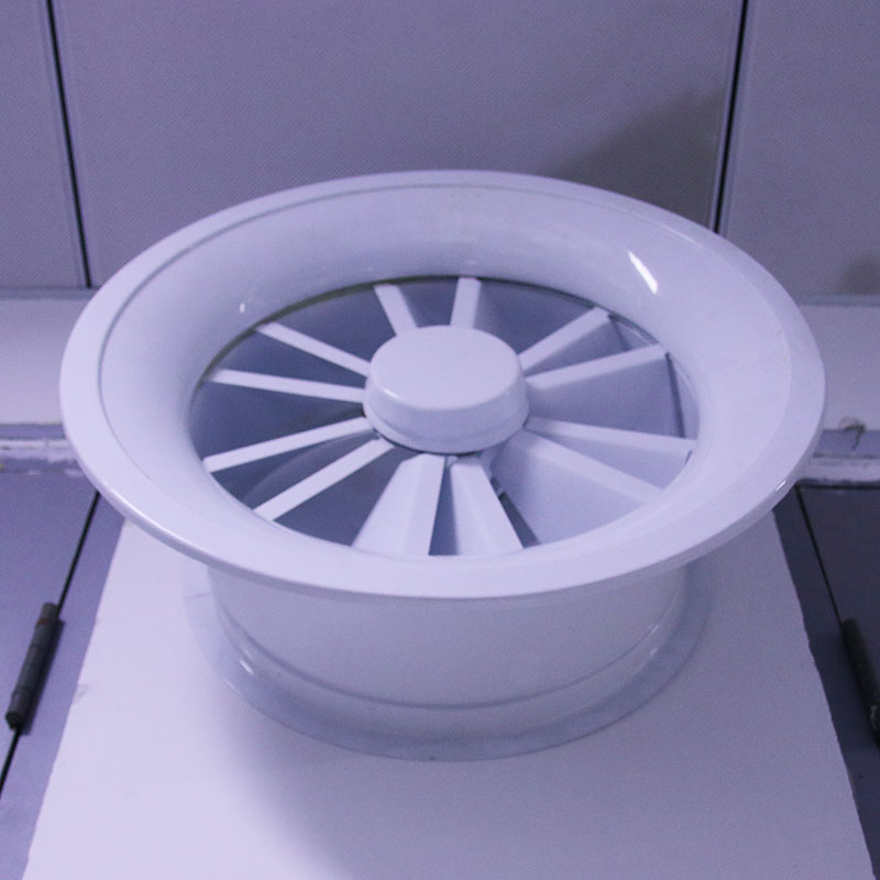 旋流風(fēng)口是空調(diào)系統(tǒng)中的一個(gè)送風(fēng)工具。在空調(diào)通風(fēng)系統(tǒng)中可用作大風(fēng)量,大溫差送風(fēng)以減少風(fēng)口數(shù)量,安裝在天花板或頂棚上,可用于3米以內(nèi)低空間,也可用二種高度大面積送風(fēng),高