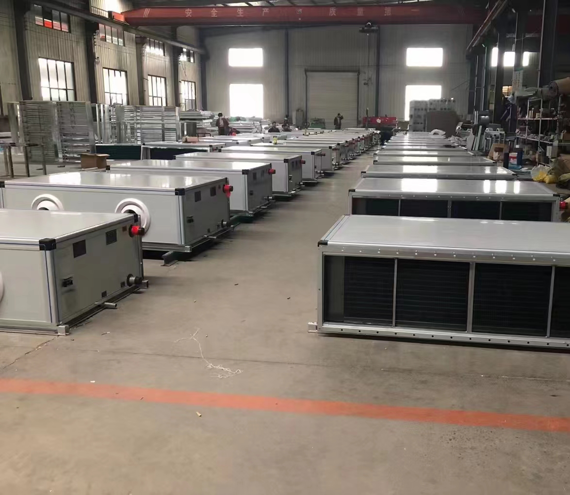 吊頂式空調(diào)機組(Ceiling air conditioning units),它是由混風段、過濾段、表冷段、加濕段、風機段組成,由冷凍水經(jīng)蒸發(fā)器蒸發(fā),通過風機進行換熱轉(zhuǎn)換而成。